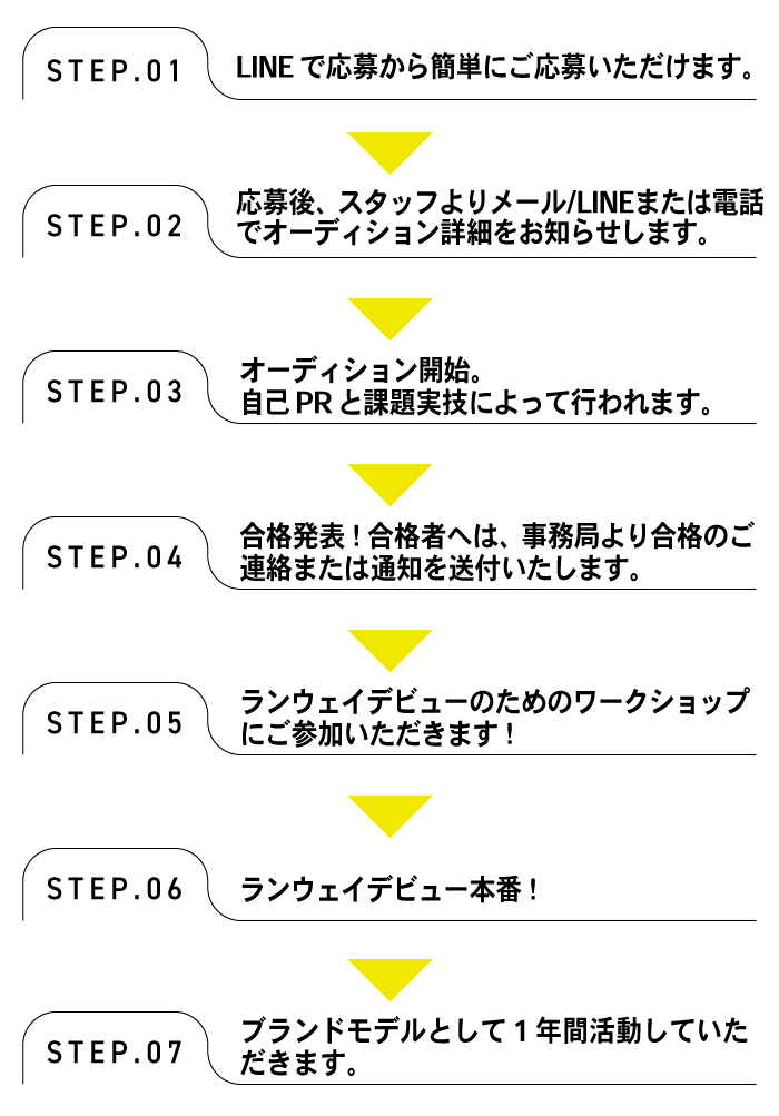 - 都内で行われるファッションショーに出演できる方に限ります